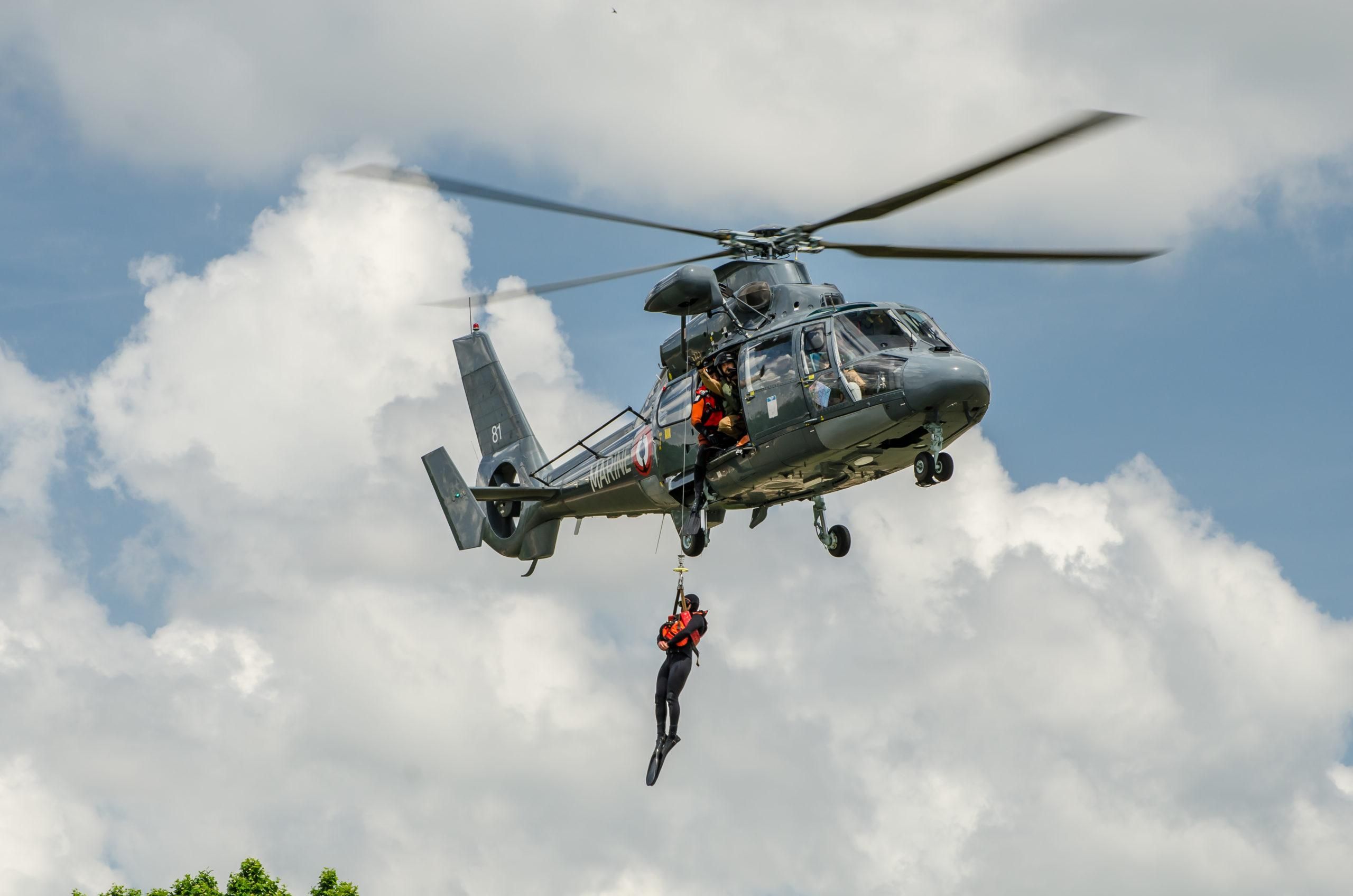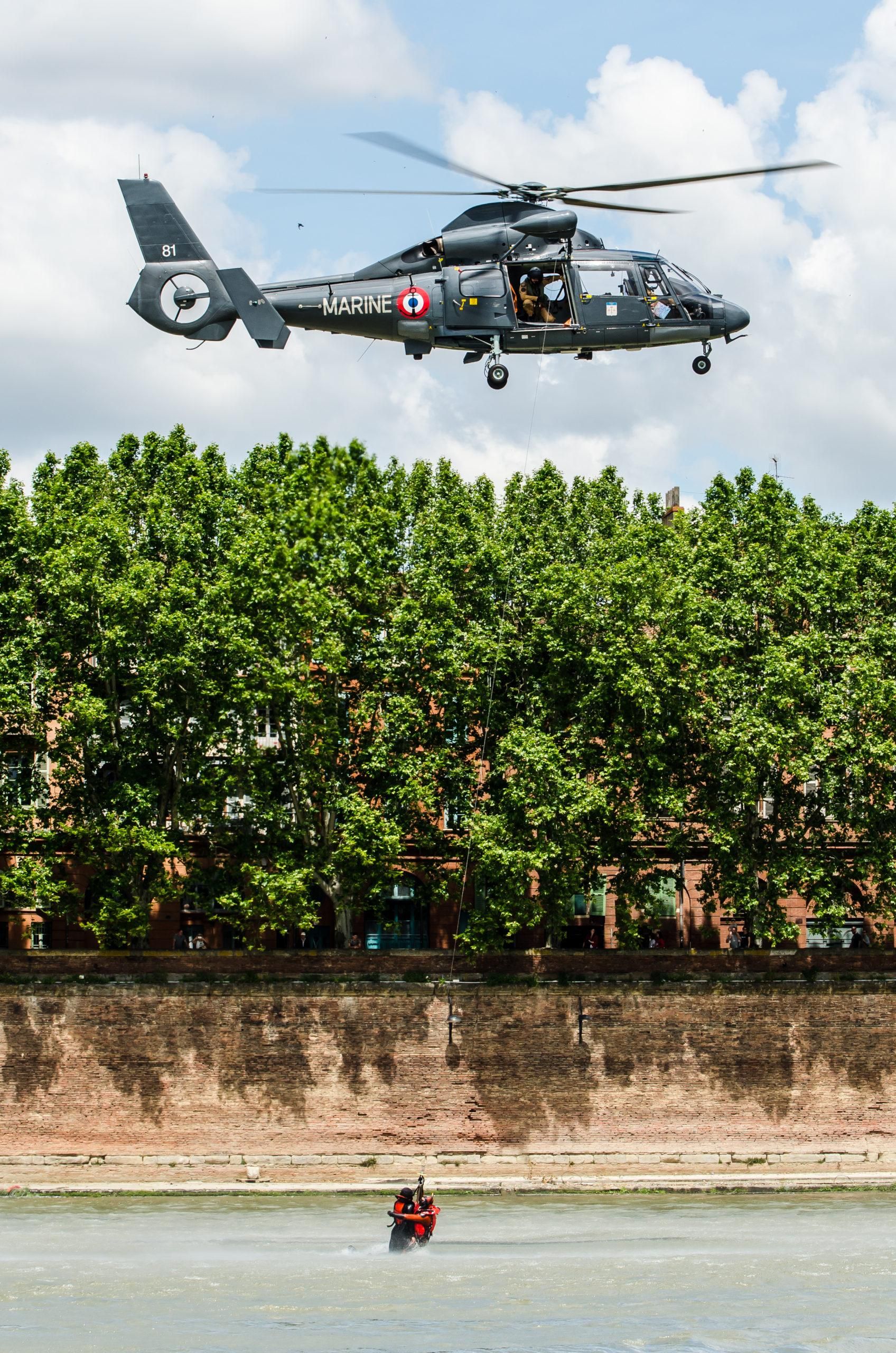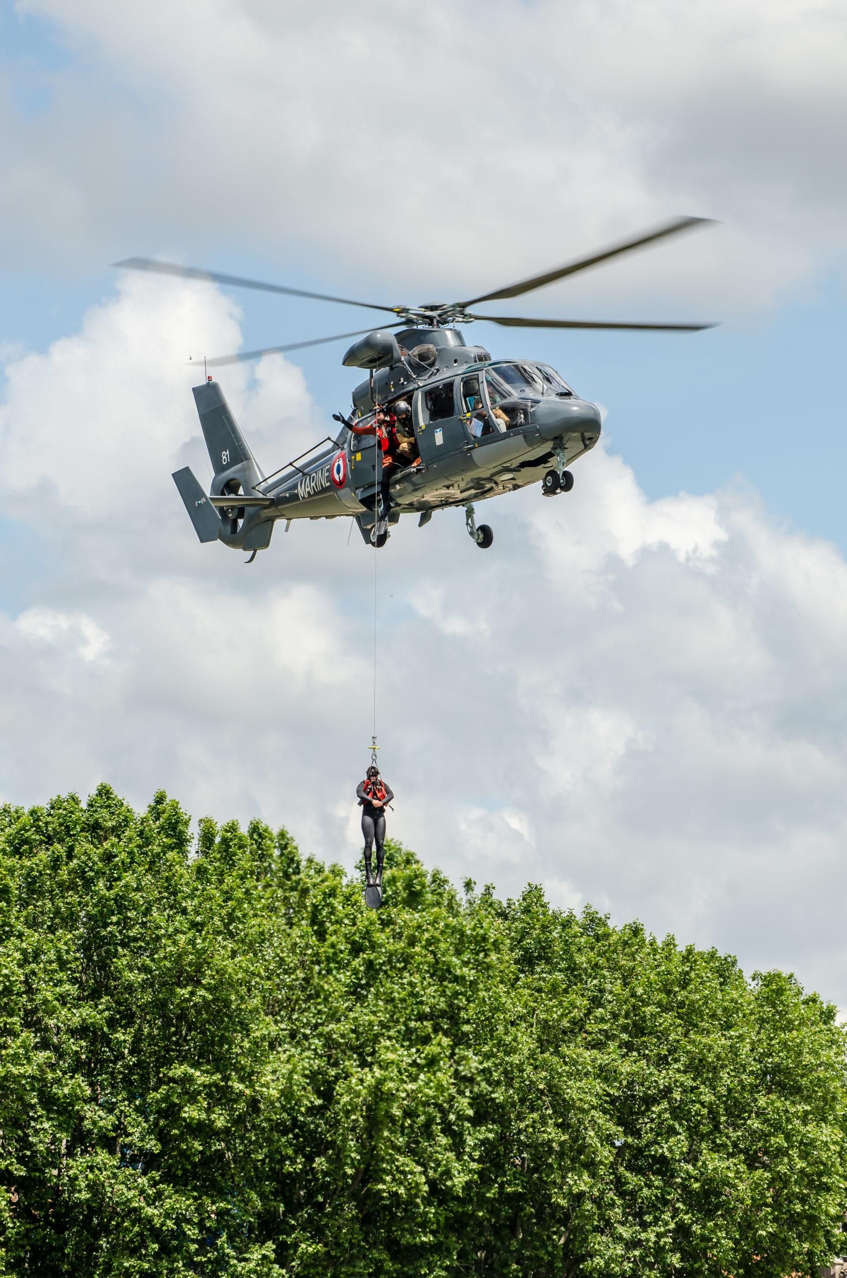 Voici la démonstration d’un hélitreuillage au dessus de la Garonne.